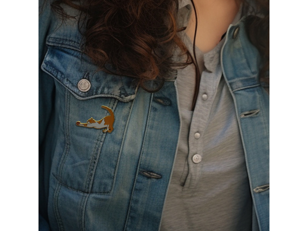 Kočka s klubíčkem v podobě odznáčku je ultimátním symbolem pohody a hravosti. Dodá vám špetku roztomilosti, ať už si ji připnete na svetřík nebo batoh. Odznáček je dlouhý 40 mm a kočku na něm můžete mít černo-bílou nebo zrzavo-bílou. Vyroben je ze smaltované mosazi a zapíná se jako pin.